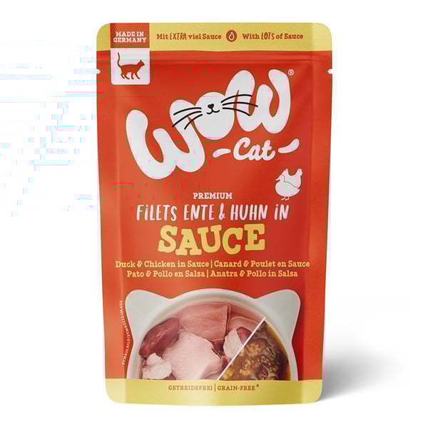 WOW CAT Filets Ente & Huhn in Sauce bietet deiner Katze ein hochwertiges Alleinfutter, das speziell für ausgewachsene Katzen entwickelt wurde. Die Kombination aus saftigem Hühnerfilet und herzhafter Ente in einer reichhaltigen Sauce sorgt für ein besonderes Festmahl. Die sorgfältig ausgewählten Zutaten bieten eine ausgewogene Ernährung mit allen wichtigen Nährstoffen, die deine Katze benötigt.