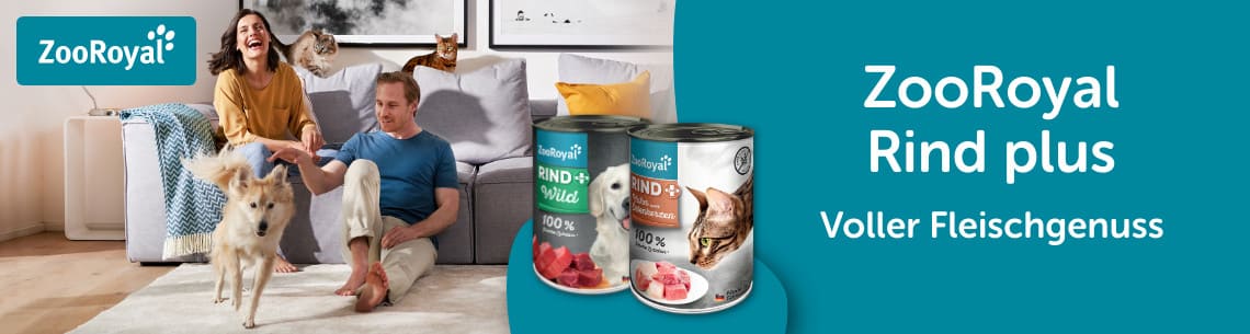 Unter ZooRoyal Rind plus bieten wir Nassfutter an, das die Basiskomponente Rind beinhaltet und zusätzlich um weitere Proteinquellen ergänzt wird.