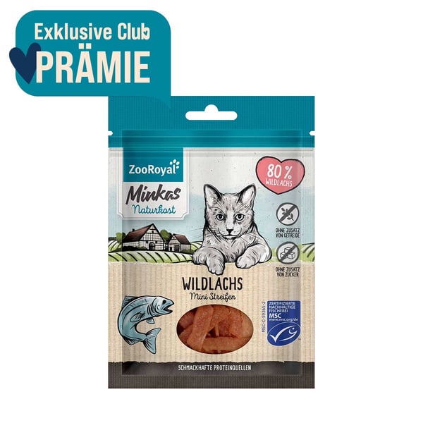 Du suchst einen schmackhaften Snack, um deine Katze zu begeistern? ZooRoyal Minkas Naturkost Mini Streifen Wildlachs eignen sich hervorragend als kleine Nascherei oder Belohnung für deinen Vierbeiner. Für einen guten Appettit sorgt leckerer Lachs. Der Snack ist speziell auf die Bedürfnisse von ausgewachsenen Katzen angepasst. Der hohe Fleischanteil liefert besonders hochwertige Proteine und gibt deinem vierbeinigen Liebling Energie für den Tag.