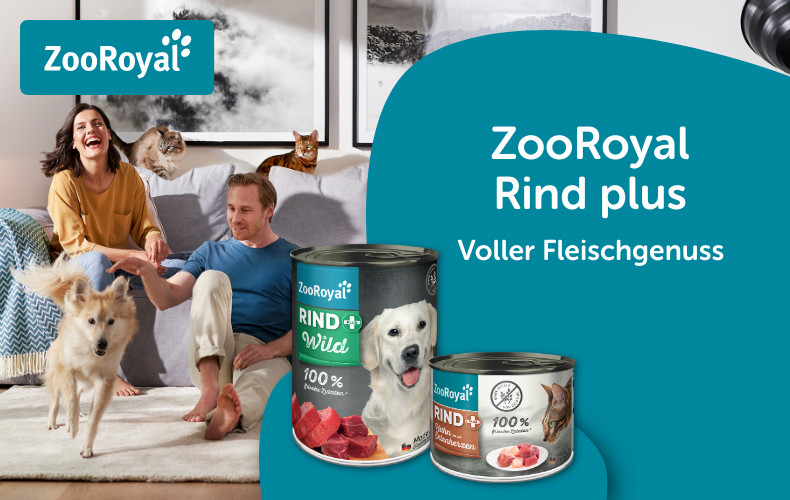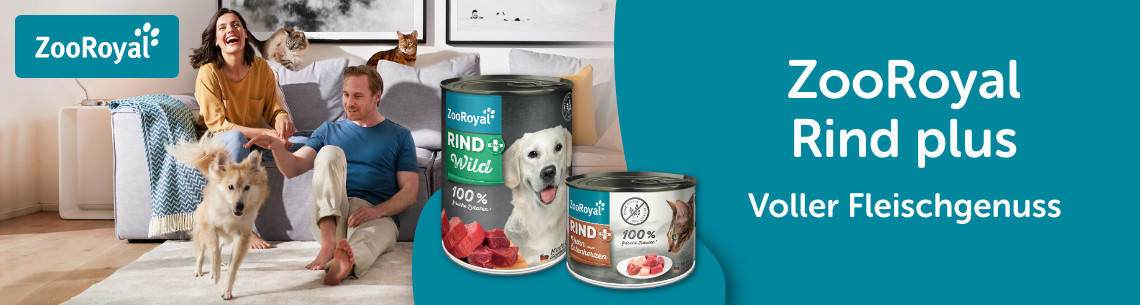 Unter ZooRoyal Rind plus bieten wir Nassfutter an, das die Basiskomponente Rind beinhaltet und zusätzlich um weitere Proteinquellen ergänzt wird.
